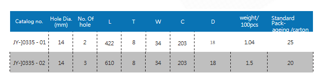 Wall Strap Guy Eye (JY-J0335-01/JY-J0335-02) is a steel fitting designed for connecting guy wires to wall structures in power and telecommunication systems, eliminating the need for utility pole mounting. JY-J0335-01 features 2 holes (14mm diameter), 422mm length, weighs 104 units per 100 pieces (25 per carton); JY-J0335-02 has 3 holes (14mm diameter), 610mm length, weighs 1.5 units per 100 pieces (20 per carton). Both models have a forged eye design for secure guy wire attachment and a galvanized finish for corrosion resistance.